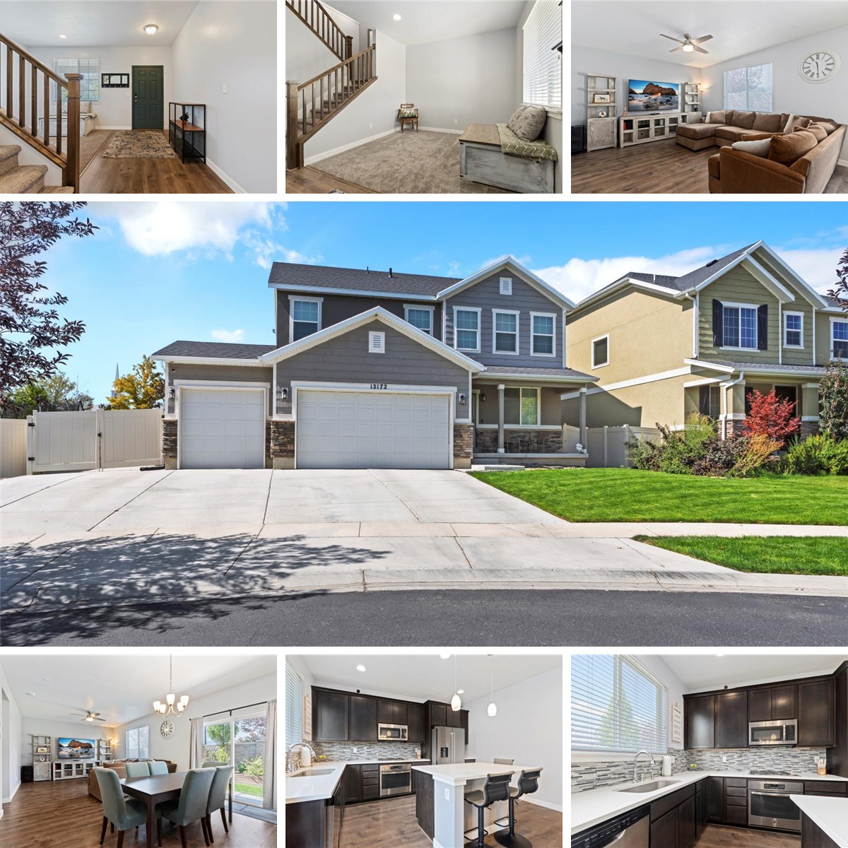 Beautifully designed 5-bedroom, 3.5-bathroom home built in 2017 offering space, comfort, and modern convenience! Nestled on a .14 acre lot, this well-maintained home boasts mature landscaping, fully fenced backyard, and a private patio-perfect for relaxing or entertaining. Inside, the main floor features an open-concept kitchen, a bright living room, a cozy family room, and a convenient half-bathroom off the family room. Upstairs, the primary suite includes an ensuite bathroom, along with 2 additional bedrooms, a full bathroom, a loft area for 2nd family room, and a laundry room for ultimate convenience. The fully finished basement expands your living space with 2 more bedrooms, a 3/4 bathroom, a 3rd family room, and extra storage. A 3-car garage and an extended driveway provides ample parking and RV parking. Situated in a desirable Herriman neighborhood, this home offers easy access to parks, schools, shopping, and dining. New carpet installed level 1 & level 2.