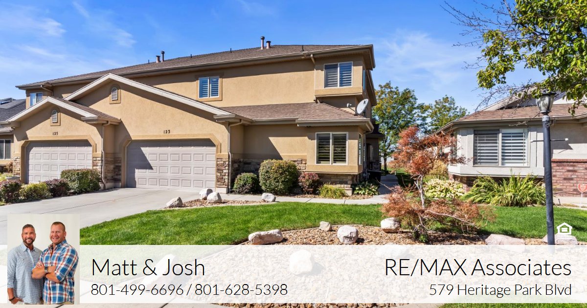 Beautiful Living in this gated community on the Barn Golf Course - but NOT a 55+ community! This home features handsome exterior of stone and stucco, full landscaping, 2-car garage. Interior has foyer with wainscoting, 2-tone paint, decorative archways, great room with gas fireplace with stone surround, plantation shutters, spacious kitchen with rich dark-stained cabinets & granite counters, large dining area, two bedrooms, 1 full bath and laundry complete the main level. Upper level features French doors into generous primary bedroom with en-suite with separate tub and shower and a walk-in closet. Additional bedroom and full bath plus family room/den area complete the upstairs. Relax on the covered back patio while watching Hole #17 on the golf course, all while the HOA provides lawn care, snow removal, water-trash-sewer paid!  For more information call Josh or Matt at 801-628-3733.  To view all homes visit www.AllHouseValues.com. Re/Max Associates