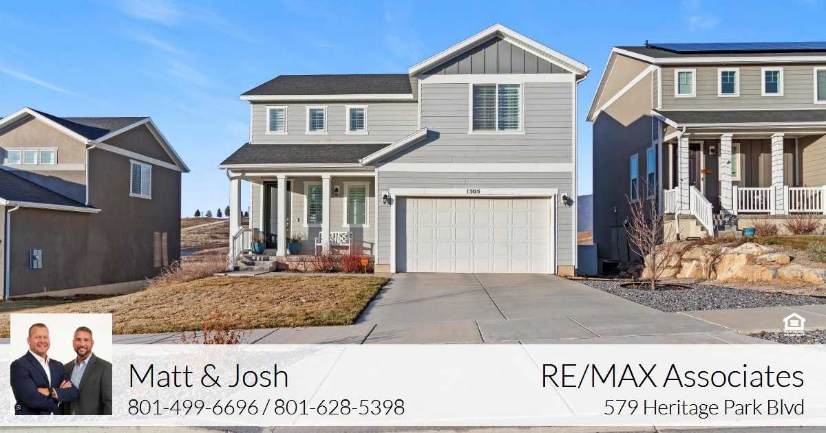 Picture perfect in this two-story home featuring Craftsman-style exterior finishes with welcoming front porch. Inside you'll enjoy the easy-maintenance laminate flooring, large windows with plantation shutters, spacious great room, efficient kitchen with dark-stained cabinets / center island / granite counters / corner pantry, dining area, sliding glass door leads to large composite deck, and a half bath completes the main level. Upstairs has 2nd family room area, generous primary bedroom with large walk-in closet and en-suite having dual sinks. Two more bedrooms, full bath and laundry. Unfinished walk-out basement has 9' foundation walls, tankless water heater. Fully fenced north facing backyard - perfect for enjoyment during the hot summer months - with sprinkler system and no rear neighbors. Quick access to HAFB. For more information call Josh or Matt at 801-628-3733. To view all homes visit www.AllHouseValues.com. Re/Max Associates