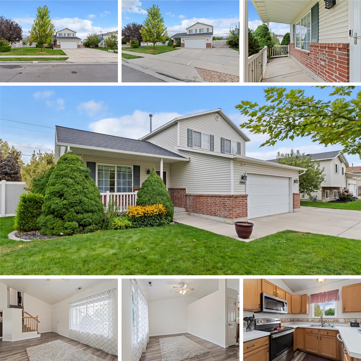 You'll love this open layout with two living spaces, plentiful windows throughout and lots of natural light. Master bedroom is spacious with a large walk-in closet off the attached bathroom. Plenty of storage found in several closets throughout the home, shed and wall to wall shelving in the garage. Kitchen location makes it easy to stay connected with the rest of the home, great for entertaining. Make this cute home your own! - new carpet planned for install prior to settlement. Enjoy your mountain views and time in the yard, a gardener's dream, with grow boxes, several varieties of fruit trees - plum, apples, pears, peach and nectarine - plus raspberries and grapes! Ideally located with quick access to I-194 and I-15, multiple nearby parks and trails, Thanksgiving Point and Lehi's most popular shopping and dining options.