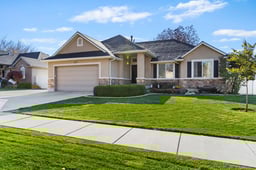 Meticulously maintained rambler with main-level living, tucked in quiet neighborhood. Elegant craftsman finishes, with updated LVP flooring (2024), vaulted ceilings, canned lighting, fresh paint, & cozy gas fireplace with rock surround. Kitchen features granite countertops, knotty alder cabinets & newer SS appliances (refrigerator & dishwasher new 2025). Owner's suite is on main floor, and has separate tub/shower & cultured marble surround. Large finished basement adds valuable living space. 2 car garage + 45 foot RV pad (approx. 18.5' wide w/ 30' behind fence). Park-like backyard is fully fenced & landscaped, w/ custom stained & stamped patio, gazebo, storage shed, and swing set & trampoline. Many major upgrades, including new roof (2025), new AC (2025), new furnace (2025), newer glass in windows on south side, dual-zone HVAC, elegant lighting & faucets, and fiber internet ports.