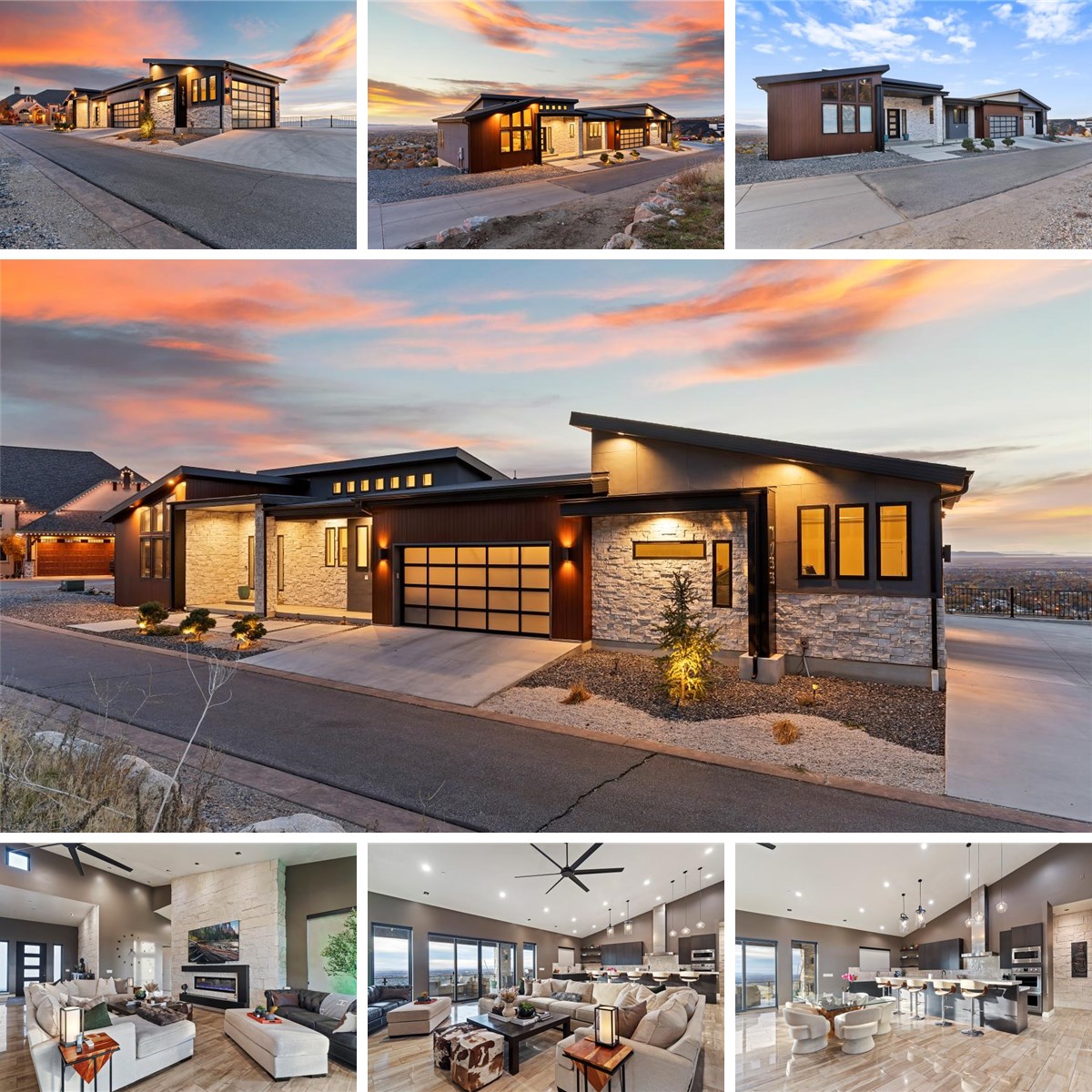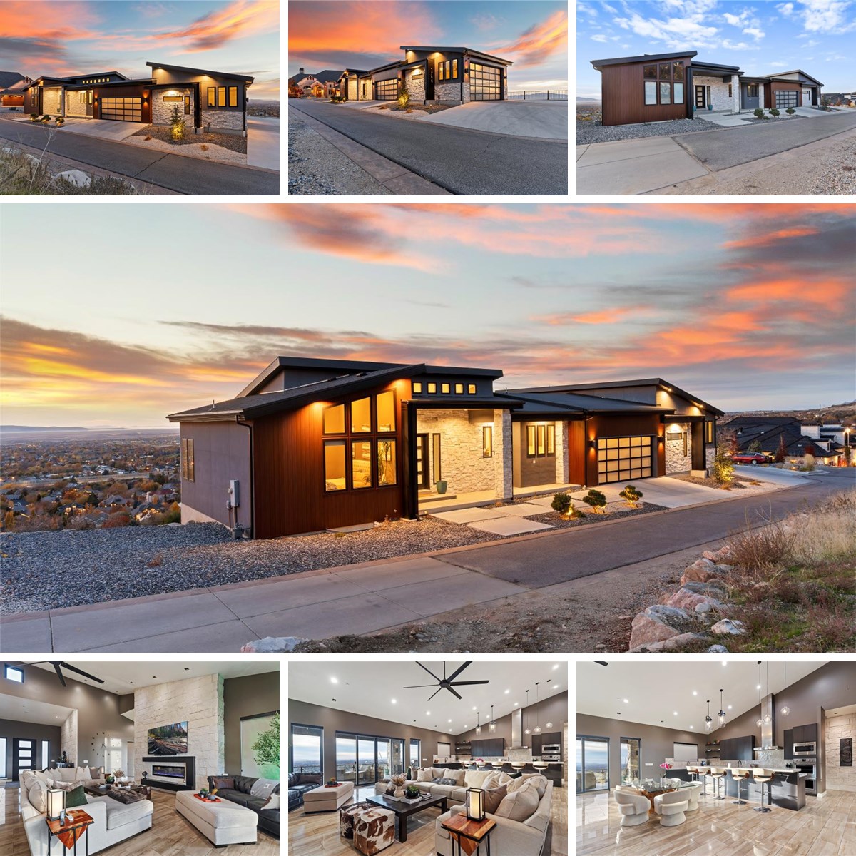"Private, Peaceful, Perfect in this distinctive custom built home in the Deer Crest at Hidden Springs Gated Community featuring handsome exterior of wood-look metal, stone and stucco, and unlimited views of the Great Salt Lake, valley and mountains! Thoughtfully designed home with single level living in mind, the interior indulges you with the expansive great room with electric fireplace with stone surround, 20' vaulted ceilings, beautiful tile flooring, upgraded lighting and ceiling fans, remote control window shades, dramatic kitchen with dark stained cabinets / double ovens / desirable 6-burner gas range with griddle / SS vent