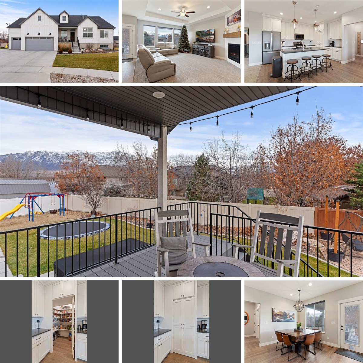 Stunning former model rambler on spacious .43-acre cul-de-sac lot with no HOA and exceptional upgrades throughout. Enjoy laminate floors, floor-to-ceiling cabinets, quartz countertops, slate stainless appliances, gas range, soft-close cabinetry, automatic blinds, a Murphy door to the large pantry, and 9' ceilings with a 10' tray ceiling. The spacious great room features a gas fireplace with a shiplap wall and big windows that fill the home with natural light. The primary suite offers a luxurious retreat with double vanity, quartz tops, deep soaker tub, separate shower with quartz surround, and a walk-in closet. Main-level conveniences include laundry, a mudroom with media drop zone, and a huge dining area. The daylight basement (possible ADU or mother in law apartment) provides a second kitchen, walkout access, cold storage, basement pantry, and additional living flexibility. Exterior highlights include a 4-car garage with massive storage loft, Tesla charger negotiable, big RV pad, tons of parking, covered Trex deck, large cement back patio, in-ground trampoline, swing-set area, putting green, garden beds, and a beautifully maintained backyard.