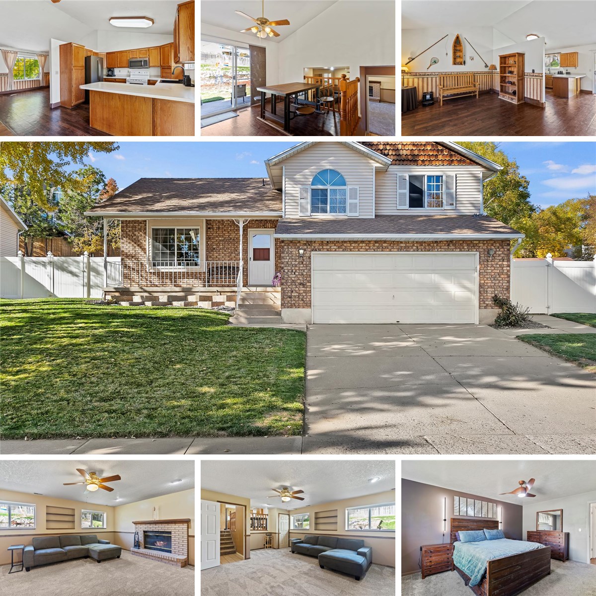 Lovingly maintained home in awesome neighborhood with stunning mountain views! Great location near Hwy 89, shopping, dining and HAFB. Convenient layout with laundry room near bedrooms, and room to grow in unfinished basement. New, durable LVT flooring throughout the main level, BRAND NEW carpet in family room, bedrooms and stairs, completely updated bathrooms w/ stylish tile surrounds and modern finishes (2022 & 2024), New 50-gallon water heater (2024), new AC (2019), new windows in primary bedroom & bathroom. Kitchen features bronze finish SS appliances, new disposal, and amazing single basin sink with waterfall spout sprayer, produce and cup washer, & strainer insert. Outside, the backyard is fully fenced with mature trees and 2 patios, fantastic for relaxing, grilling or sports. 8x10 wood shed for extra storage. Additional highlights include ceiling fans in most rooms, cozy fireplace in family room, fiber internet, cold storage room. This one checks all the boxes!