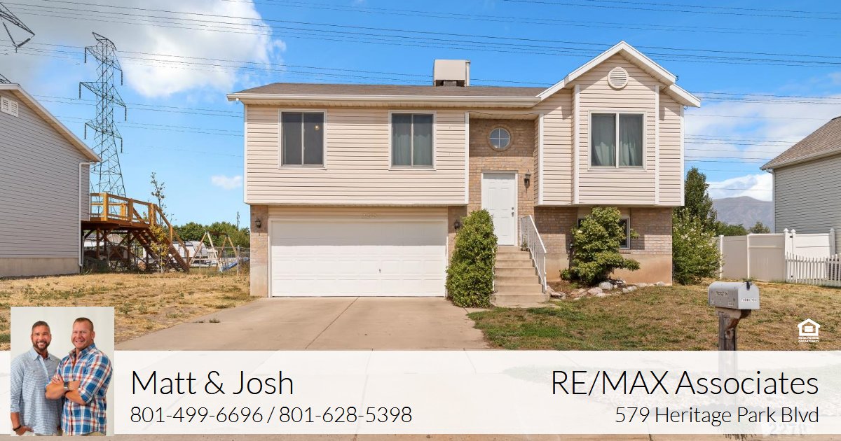 A Beautiful Opportunity in this 4 bedroom home featuring oversized .35 acre lot, brand new Anderson windows (2024), newer AC and furnace (2022) with smart thermostat. This updated home has open concept great room, LVP flooring in the efficient u-shaped kitchen (refrigerator is included!), spacious dining area with sliding glass door leading to the outside deck, primary bedroom with dual closets, and 2 more bedrooms and 1 full bath complete the main level. Finished basement has additional primary bedroom with walk-in closet and 3/4 bath. Exterior has composite back deck, open patio area, pergola and fully fenced backyard. For more information call Josh or Matt at 801-628-3733. To view all homes visit www.AllHouseValues.com. Re/Max Associates