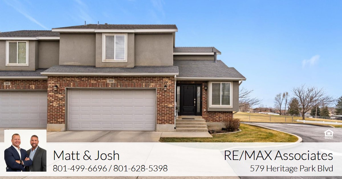 A Rare Find in this desirable small 8-unit community! This lovingly maintained home features brand new HVAC in Dec 2025, updated random-width hardwood floors and granite counters. The formal living room has lots of natural light from the corner windows and shares a see-through gas log fireplace with the family room, efficient kitchen with wood cabinets / tile backsplash / center island / pantry, large dining area and half bath complete the main level. Upstairs has the primary bedroom with vaulted ceilings and ensuite with dual sinks / jetted tub and separate shower / walk-in closet, two comfortable bedrooms and 1 full bath plus laundry. Finished basement has generous family room, additional bedroom and 1 full bath. Home backs to elementary school with walking path, easy access to the interstate. For more information call Josh or Matt at 801-628-3733. To view all homes visit www.AllHouseValues.com. Re/Max Associates