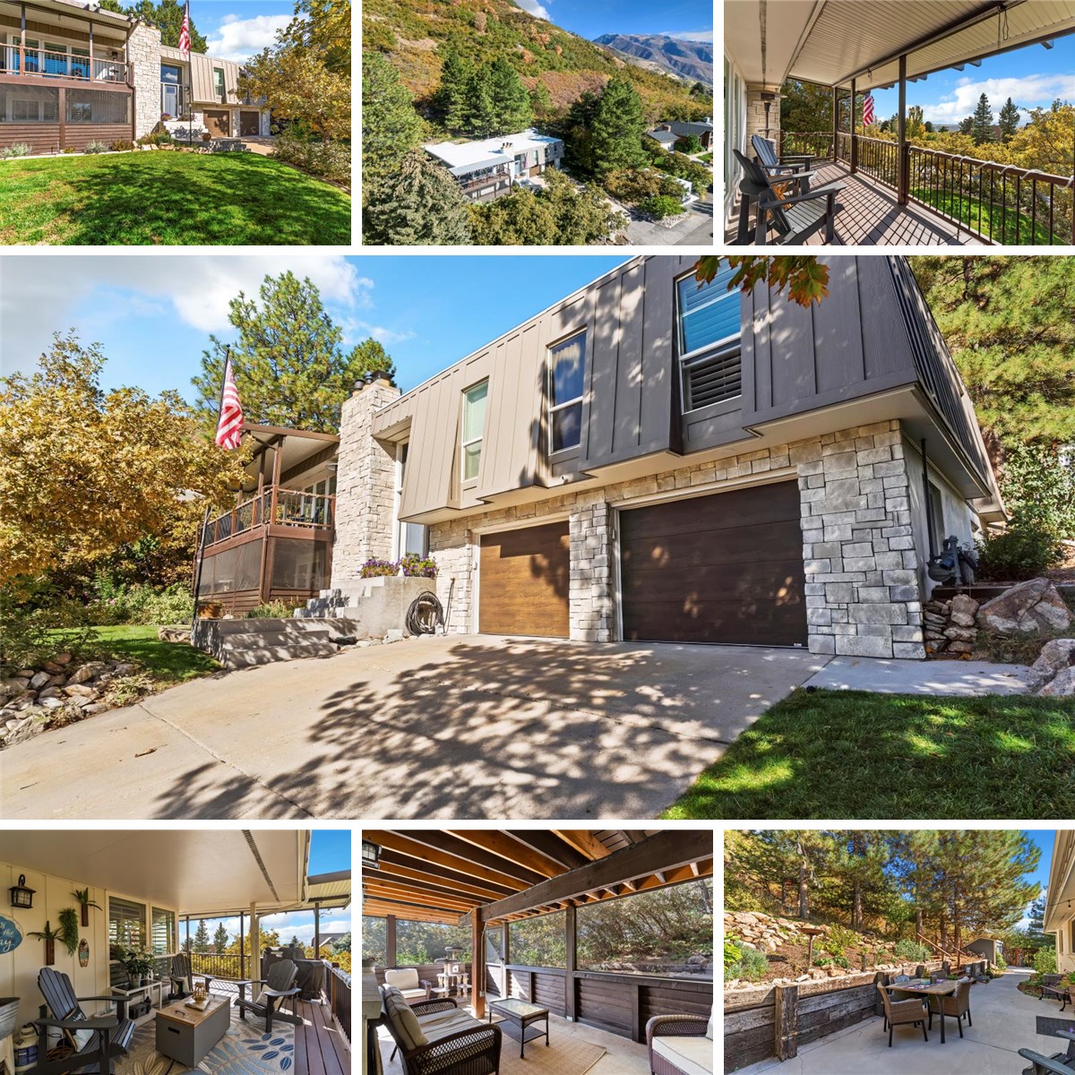 Located on the Uintah/Highlands East Bench, this home commands stunning valley and mountain views, while offering maximum privacy, surrounded by mature trees. Because it backs up to National Forest property, you have no rear neighbors, wildlife encounters, and easy access to nearby hiking trails! The fully landscaped yard features automatic sprinklers and drip lines, a garden with deer proof fencing, a covered back patio w/ an extended cement pad, storage shed, 19x30 RV pad with direct road access, & a fully screened/enclosed walkout porch that is a great space for pets. Upstairs, a show-stopping, fully covered, wraparound Trex deck features roll-down shades, a gas grill hookup, and valley views. The home has been totally updated and remodeled! The gourmet kitchen includes a huge island with double sided cabinetry, white shaker cabinets, leathered granite countertops, subway tile backsplash, large walk-in pantry, deep stainless steel sink, & gas range & oven. The home includes new vinyl windows, plantation shutters, an open concept floor plan with tons of natural light, easy to clean laminate flooring throughout, fresh paint, all new interior and exterior doors, and updated bathrooms. The large owner's suite includes two closets, double vanity, & walk-in shower. The home also features one-level living with a main floor washer/dryer. The home includes two gas fireplaces, a basement kitchenette, epoxy flooring in the garage, new roof (2020), newly painted exterior, two furnaces (main replaced 2017), new AC unit (2017), and is energy efficient with consistently low power bills. This move-in-ready home blends modern comfort with unmatched natural surroundings. Don't miss this rare opportunity!