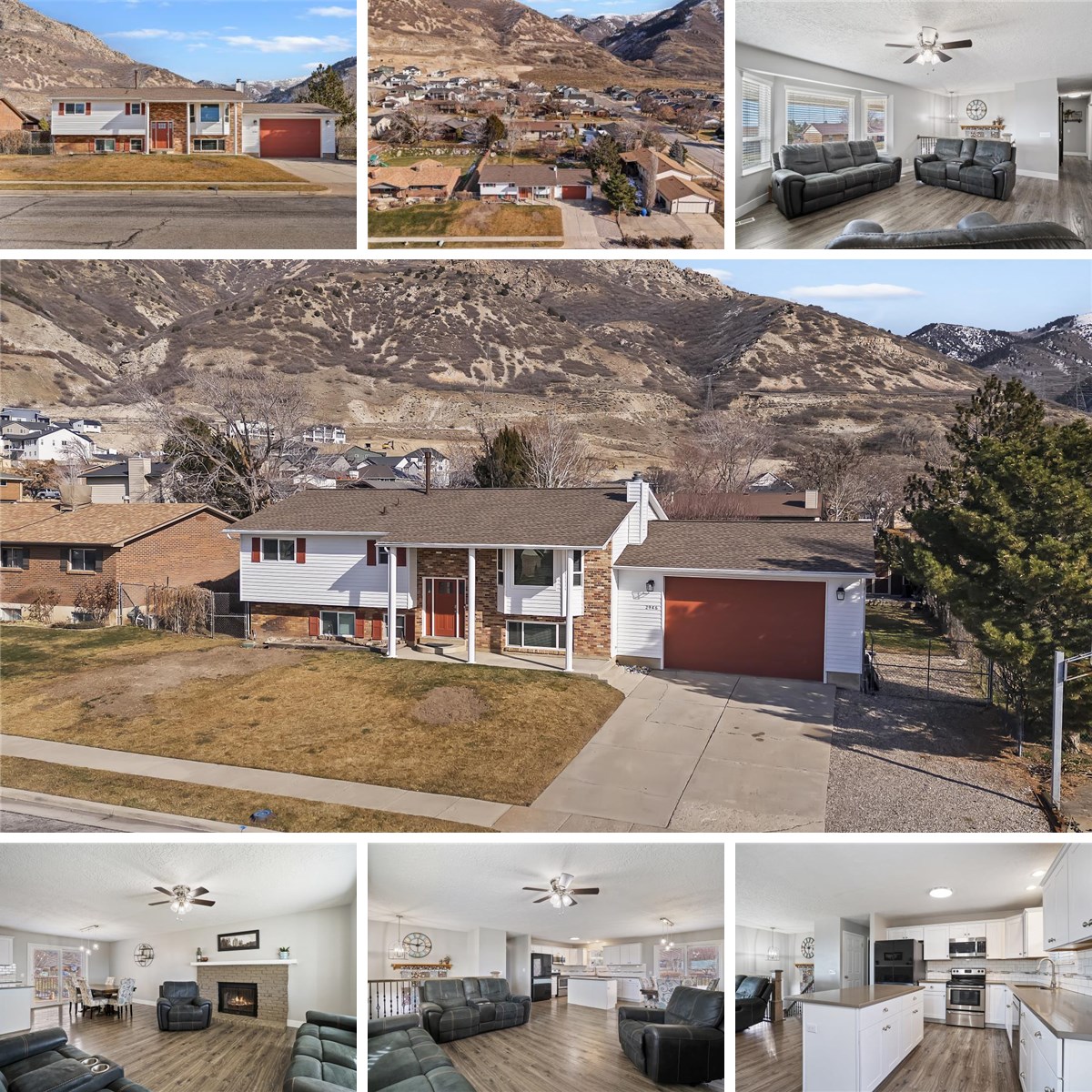 Totally remodeled home with stunning mountain and valley views, ideally located near North Ogden Canyon, Lookout Point, trails and recreation. Impeccable condition with tons of updates: New roof (2025), newer water heater and HVAC, new electrical panel, fresh interior and exterior paint, new windows, doors, new LVP flooring, and new carpet in bedrooms. Fully remodeled kitchen with white shaker cabinets, quartz countertops, subway tile backsplash, & new designer lighting. Updated bathrooms, including new soaker tubs, new shower walls, new tile and new vanities. Enjoy two family rooms, both with cozy fireplaces (wood-burning upstairs and freestanding gas downstairs), large laundry room, and spacious garage with 10-foot door. Fully fenced and landscaped backyard with newer 8x14 Trex deck-perfect for taking in the incredible mountain views.