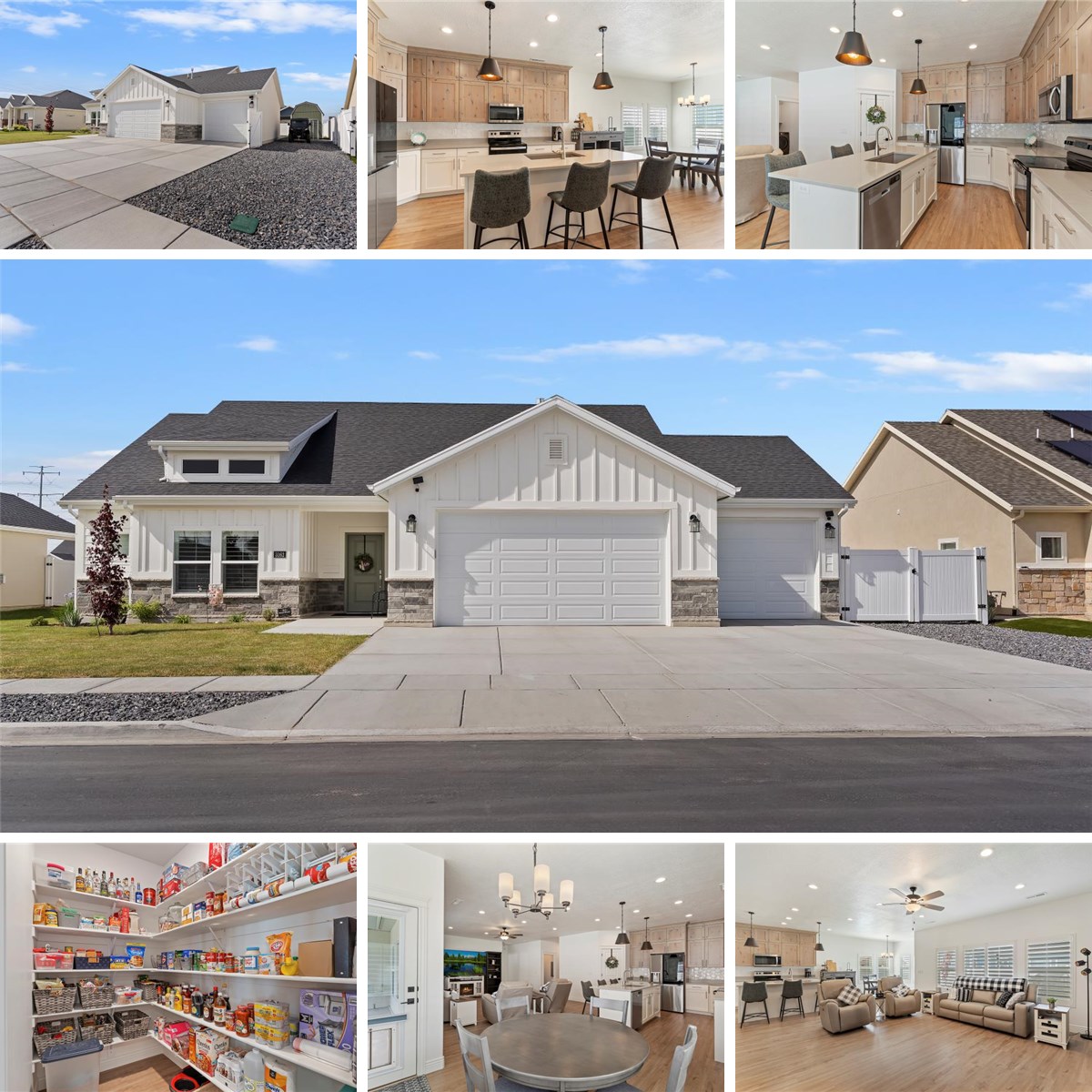 2024 patio home in outstanding condition, w/ single level living, no step entries, & easy access to freeway, parks, trails, restaurants, shopping, and more! Enjoy a new home without the hassle of putting in a yard and fencing! The home boasts tons of natural light, fully cased windows w/ plantation shutters, 9' ceilings, easy to clean LVP flooring, upgraded black hardware, wide hallways, & tons of extra storage! Upgraded kitchen includes customized quartz counters, an 8' island with a single basin composite granite sink, floor-to-ceiling cabinets featuring a two-tone finish, soft-close hinges, designer tile backsplash, SS appliances, a large pantry, roll-out garbage, and a separate dining nook. The owner's suite features a large walk-in closet and a separated (his and hers) double vanity w/ extra counter space, quartz tops, soaker tub, & oversized shower. Easy to maintain yard - more time to enjoy life! Full landscaping, auto sprinkler systems, extended 18' x 12' covered patio, an additional private 12' x 20' patio (for evening shade), & a large shed & 30' x 12' RV pad! Oversized 3-car garage with insulated doors, electric vehicle charger, and attic storage. Fiber available in the neighborhood. Sellers are sad to leave but need to relocate. They’ve loved the home, yard, and community—come see why!