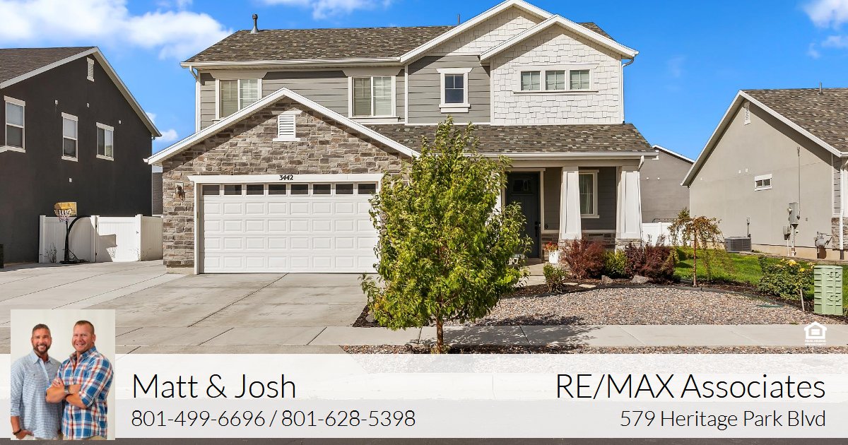 Mint Condition and Move-In Ready! This classic Craftsman style home features handsome exterior of stone, cement board siding, shingles and stucco, colorful easy maintenance front landscaping, and welcoming front porch. Main floor has spacious great room with gas log fireplace, accent wall with shiplap, 9' ceilings, 3-panel doors, lots of natural light, generous wrap-around kitchen with extra deep center island with pendant light / SS & black appliances, central dining area, mud room off the garage, laundry room and half bath. Upstairs has large family room area with lots of storage in the built-in bookcases, primary bedroom has full bath and walk-in closet, 3 more roomy bedrooms and 1 full bath. Fully fenced backyard has covered & open patio areas, garden area. The 2-car garage has 8' garage door. Walking distance to enjoy the in-ground pool, club house, gym and walking trails of the HOA. Quick access to the W Davis Corridor. For more information call Josh or Matt at 801-628-3733. To view all homes visit www.AllHouseValues.com. Re/Max Associates