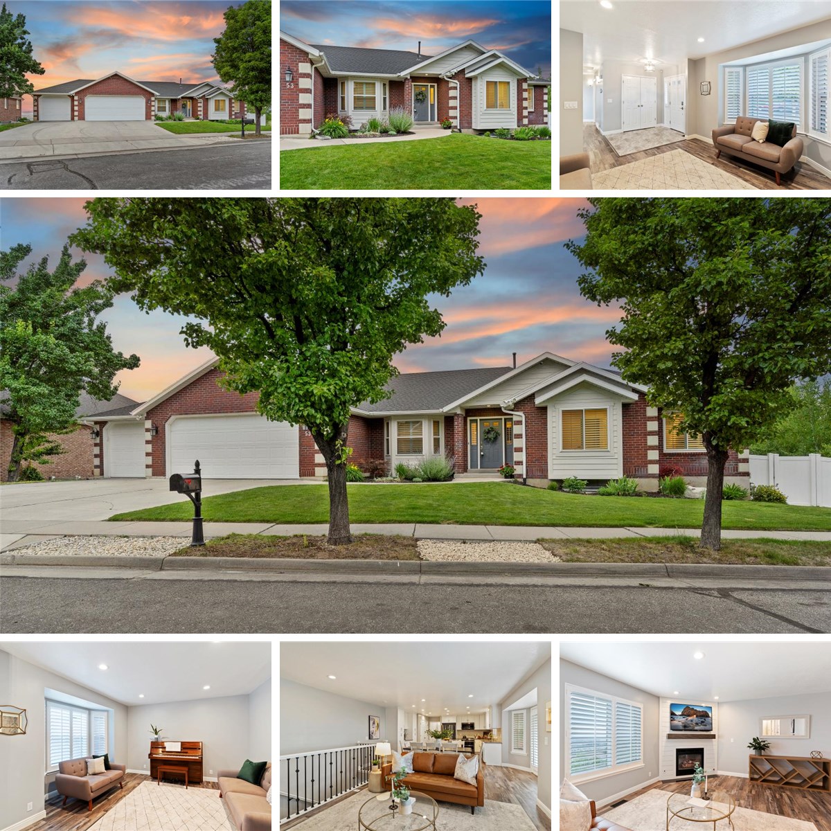 The comfortable layout is ideal for entertaining. A generous living area, semi-formal dining area, and an open kitchen all connect to a covered patio overlooking the yard with sunset views of the Great Salt Lake. Also on the main level, the luxurious primary suite boasts a fireplace and a recently updated en suite with dual vanities, a soaking tub, a water closet, and a spacious walk-in closet.